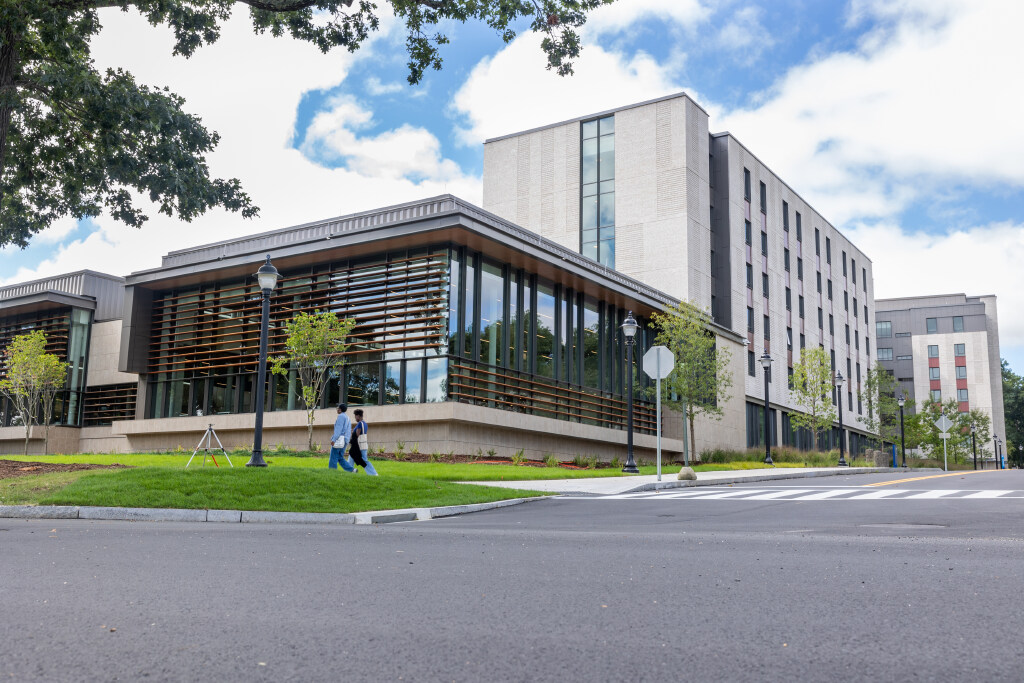 A new residence and dining hall, Connecticut Hall, is located on the University of Connecticut Storrs Campus, near the corner of Gilbert and Mansfield Roads. The project consists of a new residence hall containing 656 beds in suite style units. The Residence Hall includes associated lounges, common spaces, game room, laundry, bike storage, mail room, ground floor offices, seminar rooms, meeting rooms and multipurpose spaces. The project includes a new 500 seat dining facility consisting of a full commercial kitchen, loading dock, services spaces, and restrooms. The total project area is +/- 257,000 GSF. The building spans 7 stories high with 6 stories of residential rooms and a single-story Dining Hall featuring naturally lit high ceilings overlooking Mirror Lake. The project will include spacious courtyards, sitework improvements, outdoor seating, utilities, hardscape, site accessories, lighting and landscaping.