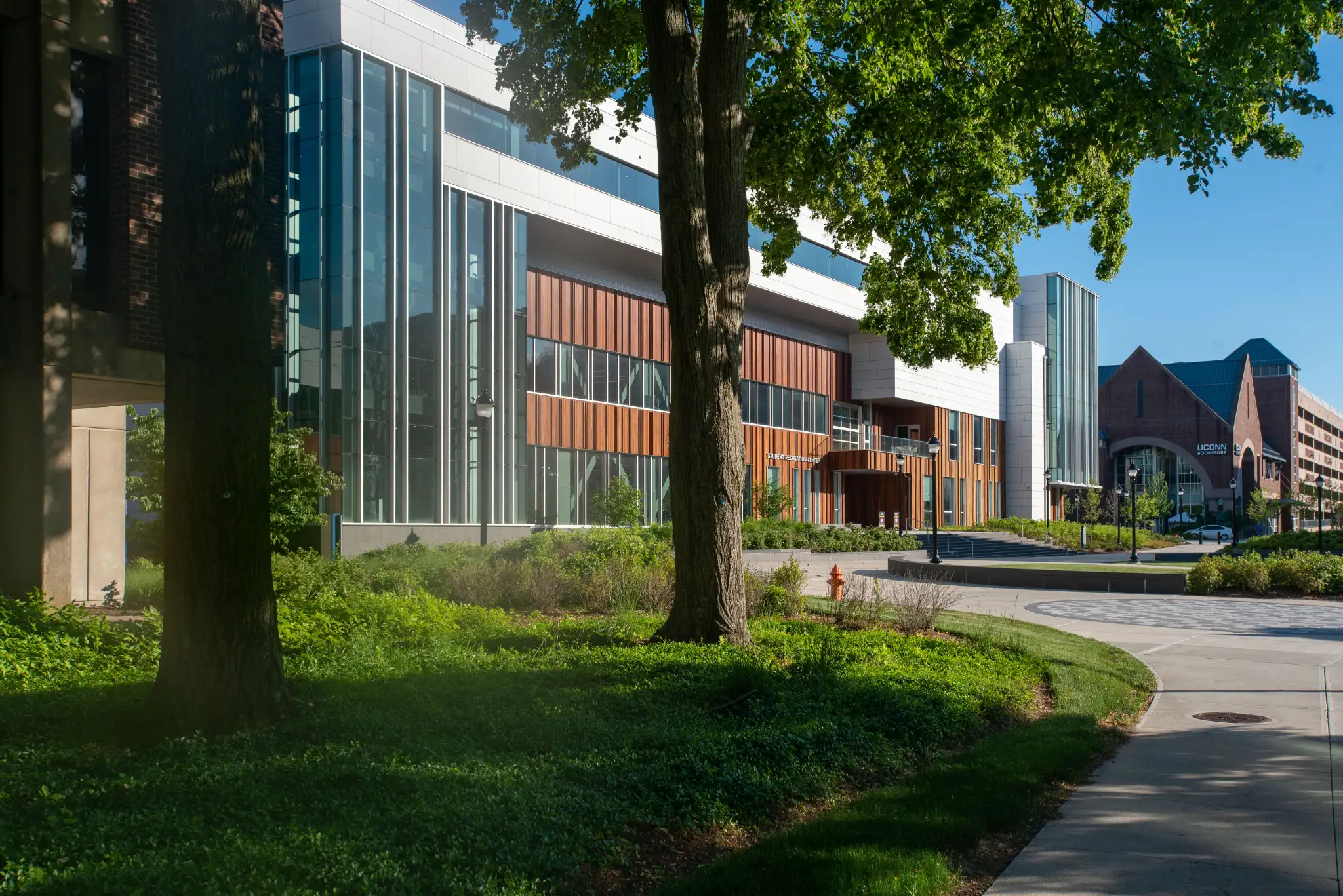 The new Student Recreation Center was built from a $100 million project budget, conforming to Connecticut High Performance Building Code regulations and registered as a LEED GOLD project.